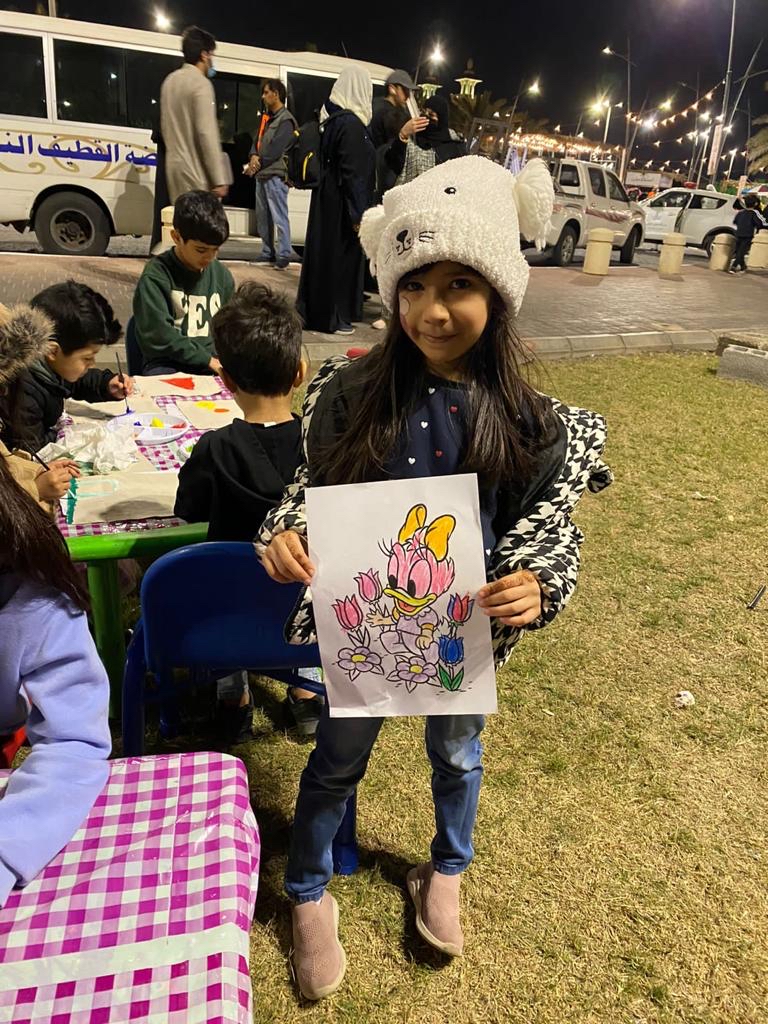 وتخلل الملتقى ركن لنادي الفنون التابع للجنة التنمية الاجتماعية حيث يستعرض الفنون المباشرة التراثية والتصوير والخط العربي.