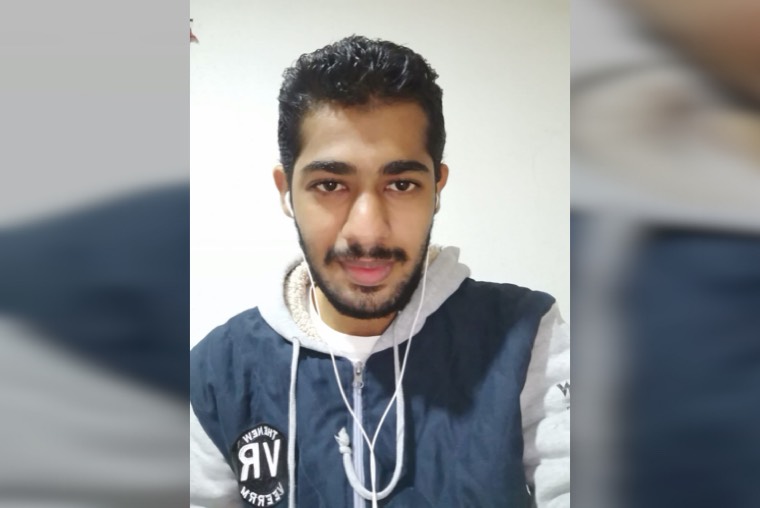 وبحسب المصدر يرتدي الشاب كنزة قطنية شبابية زرقاء بأكمام بيضاء ذات غطاء رأس أبيض.