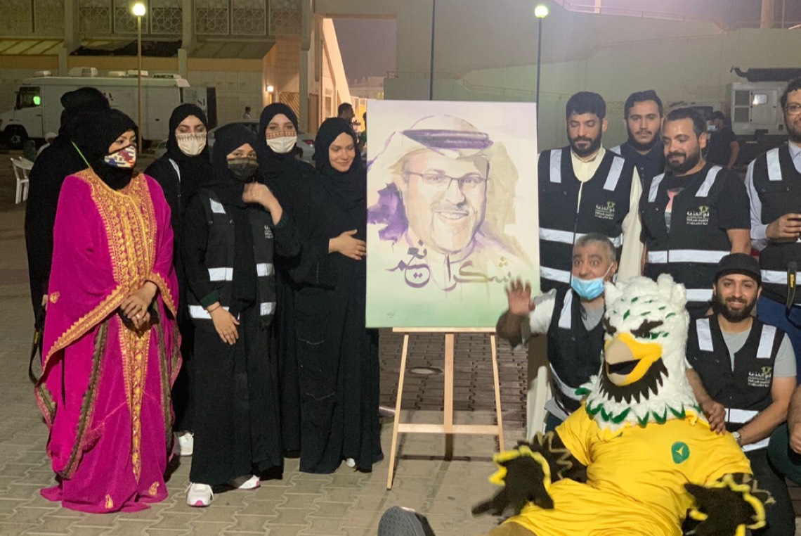 شارك فريق في الخدمة التطوعي فعاليات نادي الخليج بلوحة تعبيرية تحت عنوان ”شكرًا نعيم“ وفاءً للفقيد نعيم المكحل.