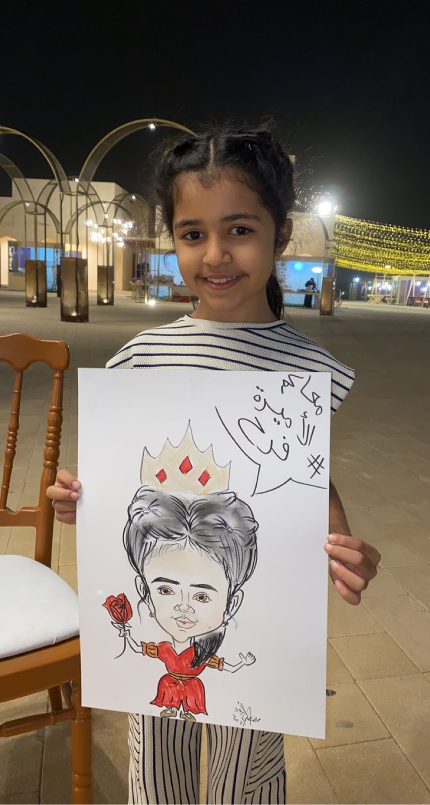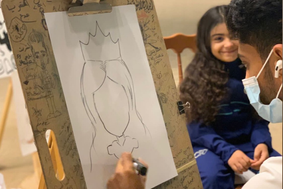 رسم الفنان الكاريكاتيري مصطفى الأسود، أكثر من 100 زائر في ملتقى الرامس ببلدة العوامية بمحافظة القطيف.
