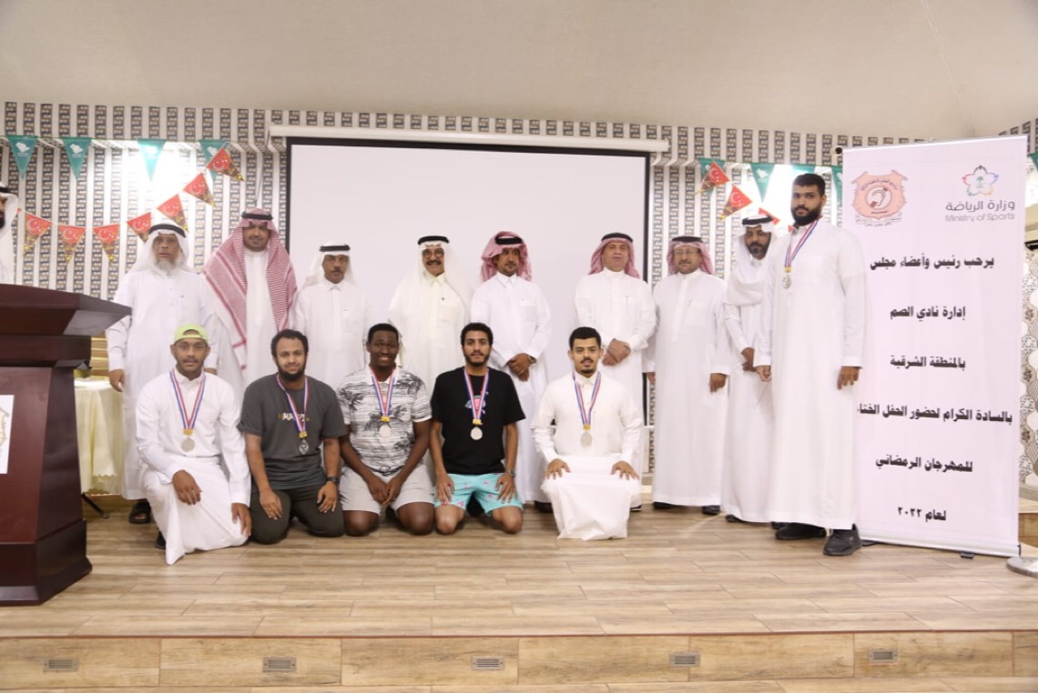 اختتم نادي الصم في المنطقة الشرقية، مساء أمس، مهرجانه الرمضاني لعام 1443 وتكريم المشاركين في مسابقة تحفيظ القرآن الكريم، وكذلك المشاركين في مختلف الألعاب الرياضية ككرة القدم والطائرة والبلاستيشن وتنس الطاولة.