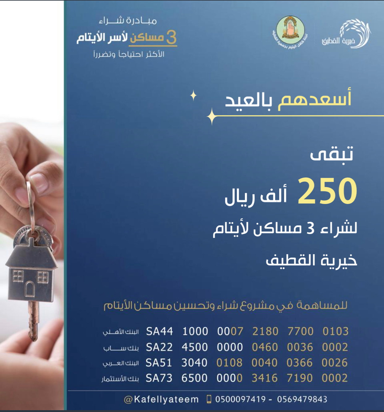 250 ألف ريال تفصل «خيرية القطيف» عن شراء 3 مساكن للأيتام