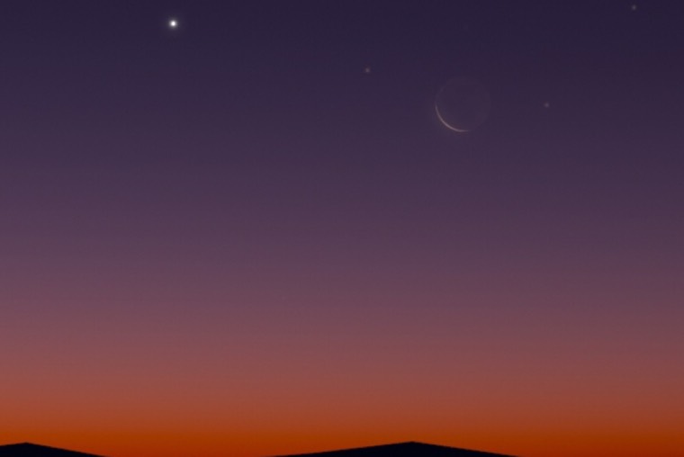 وأضاف: سيكون هلال القمر نهاية الشهر أسفل يمين «أو 6 درجات إلى الجنوب» من كوكب عطارد، باتجاه الأفق الجنوب الشرقي في سماء الوطن العربي.