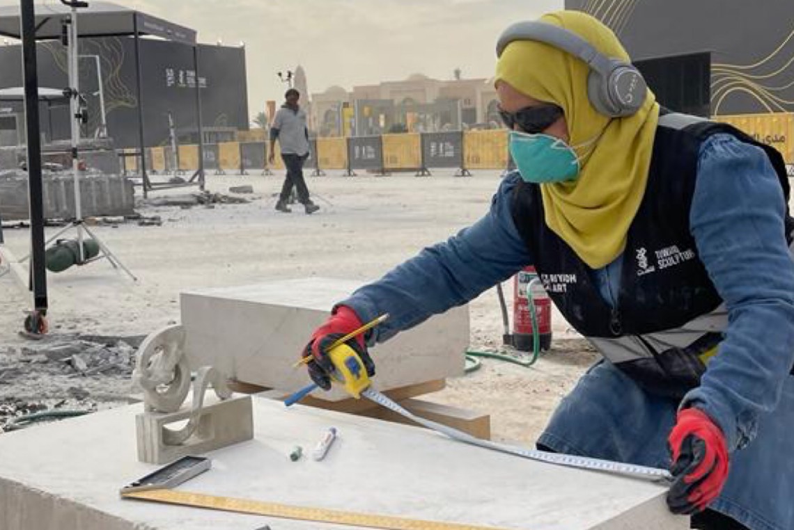 «الشافعي» شاركت بعملها الفني في ملتقى «طويق الدولي للنحت في الرياض»،