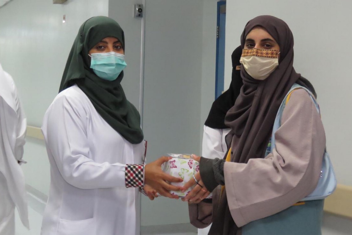 ومن جهتها، وصفت المتطوعة الزهراء المعيوف، عملها بالمبادرة بالشعور الجميل، قائلة: «تقديم الهدايا بأنفسنا للمرضى إنجاز عظيم بأن نحاول رفع التعب عنهم ونسعدهم».