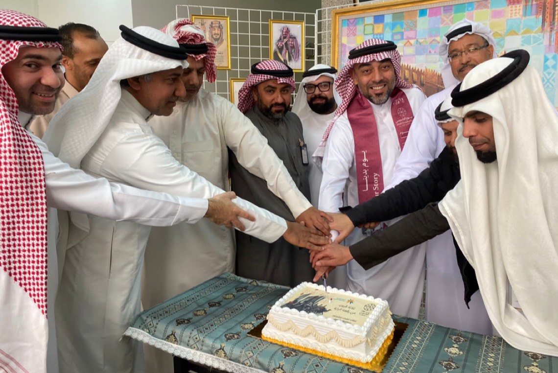 وتحدث مدير المكتب حسين أبو السعود عن يوم التأسيس الذي تحتفل فيه المملكة بتأسيس الدولة السعودية الأولى على يد الإمام محمد بن سعود.