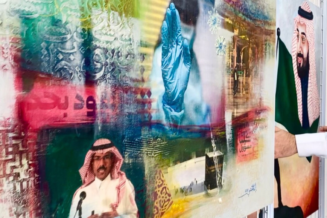 ومن أبرز الفنانين المشاركين منير الحجي، وإيمان الجشي، وأميرة البري، بلوحات تشكيلية تناولت التراث الشعبي للمملكة، وتجسيد الشخصيات الوطنية البارزة والملوك والأمراء في تاريخ المملكة.