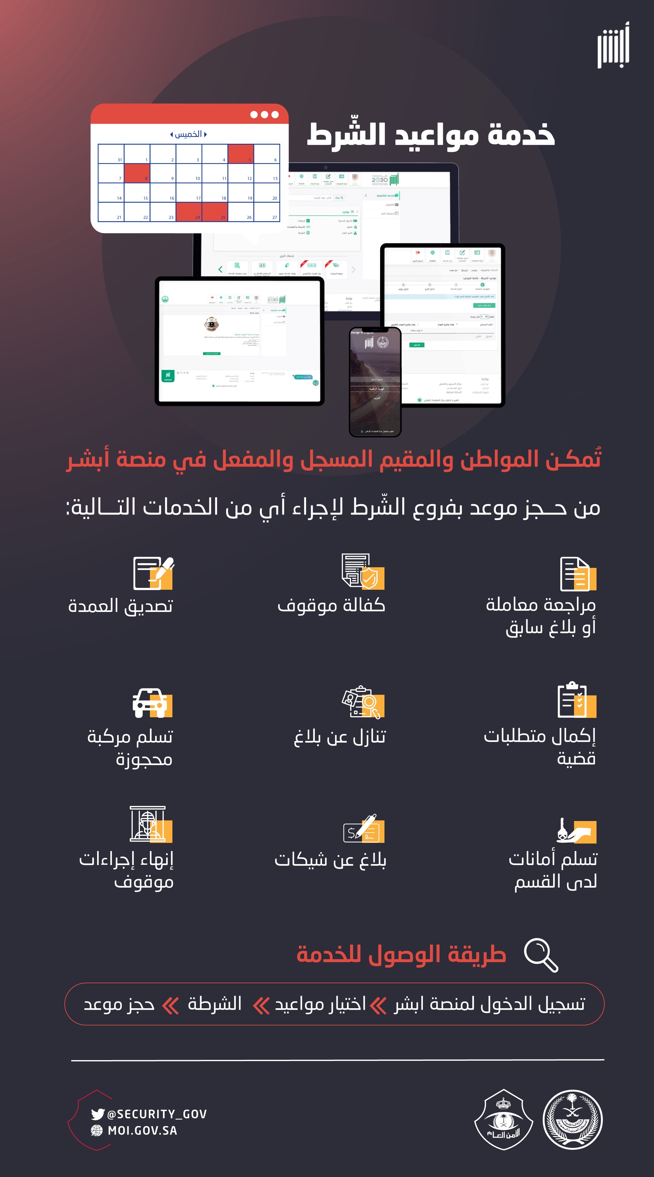 كشف الأمن العام، اليوم الأحد، مزايا خدمة مواعيد الشّرط التي تمكن المواطنين من حجز موعد لإجراء 9 خدمات.