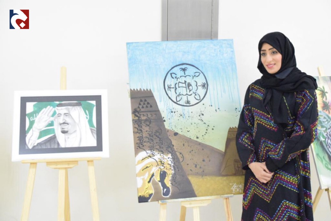 يأتي ذلك في إطار احتفالات يوم التأسيس السعودي، فيما أشاد المشاركون باللوحات ومضامينها الأصيلة.