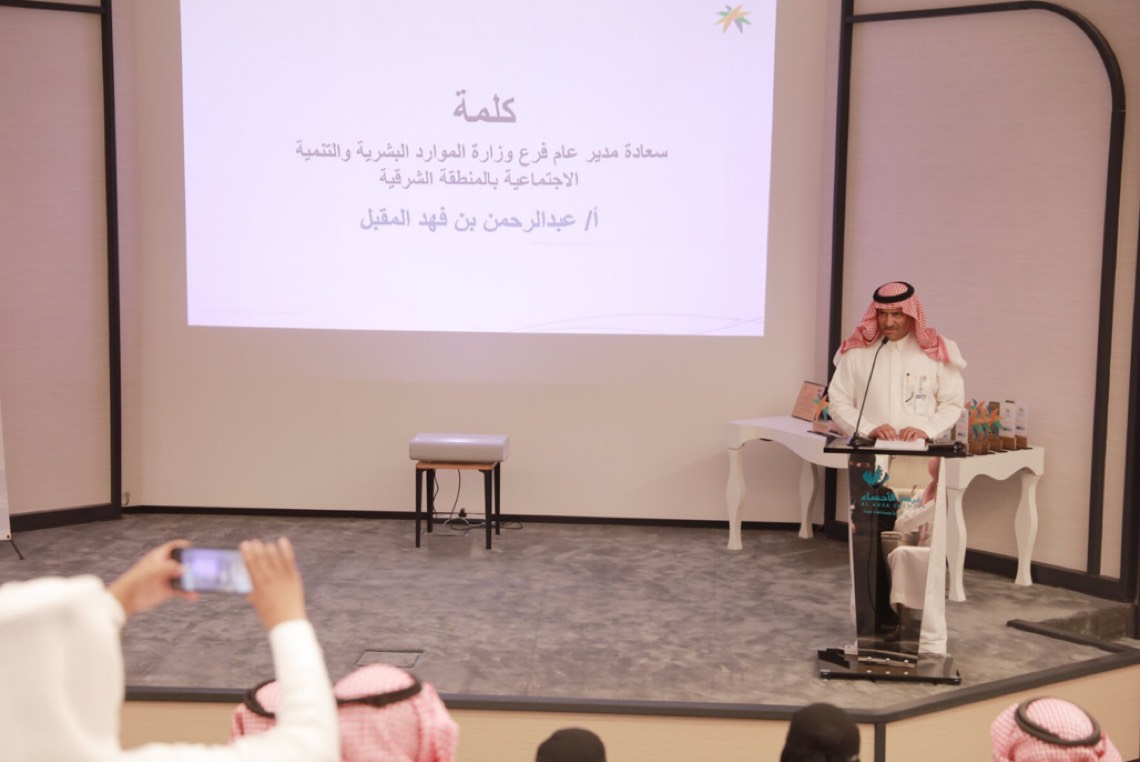 جاء ذلك بحضور مساعد مدير عام فرع الوزارة بالمنطقة الشرقية للتنمية الاجتماعية ابتسام الحميزي، ورئيس إدارة التجمع الصحي بالأحساء محمد العفالق، ونائب أمين غرفة الأحساء أحمد المنصور، وعدد من مديري الجهات الحكومية والفروع الوزارية.