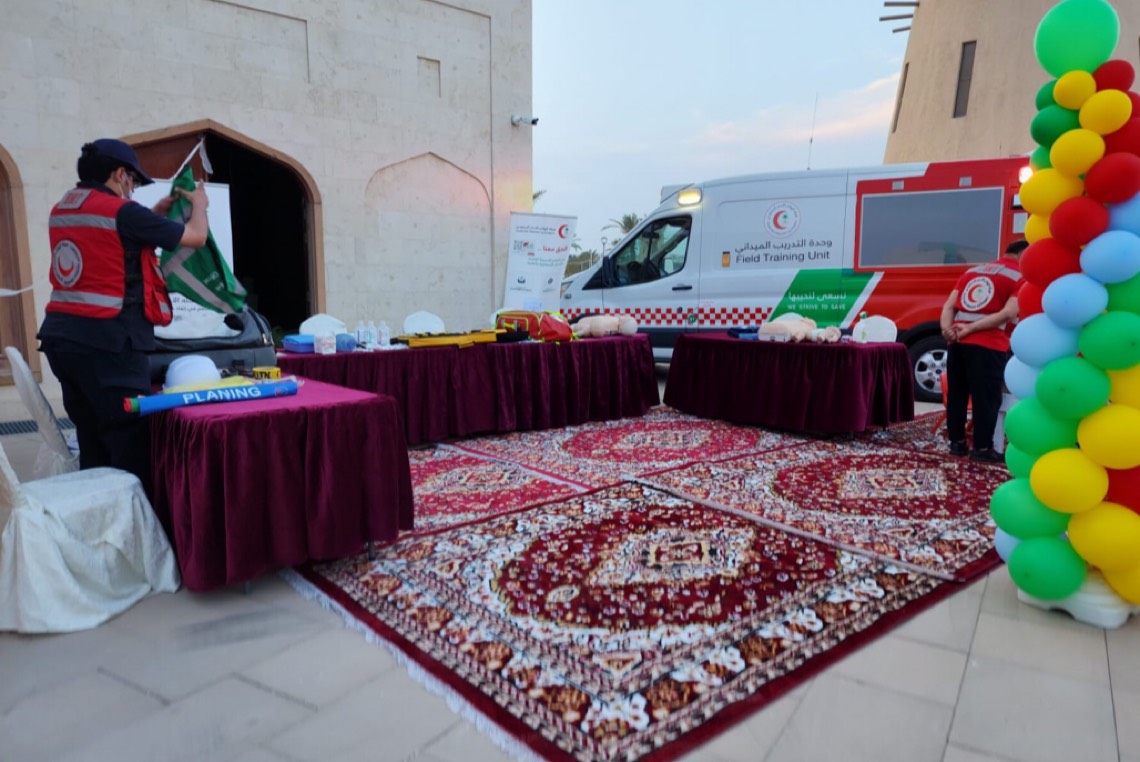 وتناولت الأركان توعية الزائرين حول الحالات الإسعافية كالغصة والحروق والكسور وعدد من الحالات الإسعافية ومناقشة الحالات مرضية متنوعة، والتعريف بدورات ”سفير الحياة“ للإسعافات الأولية المقدمة عبر منصة ”متأهب“.