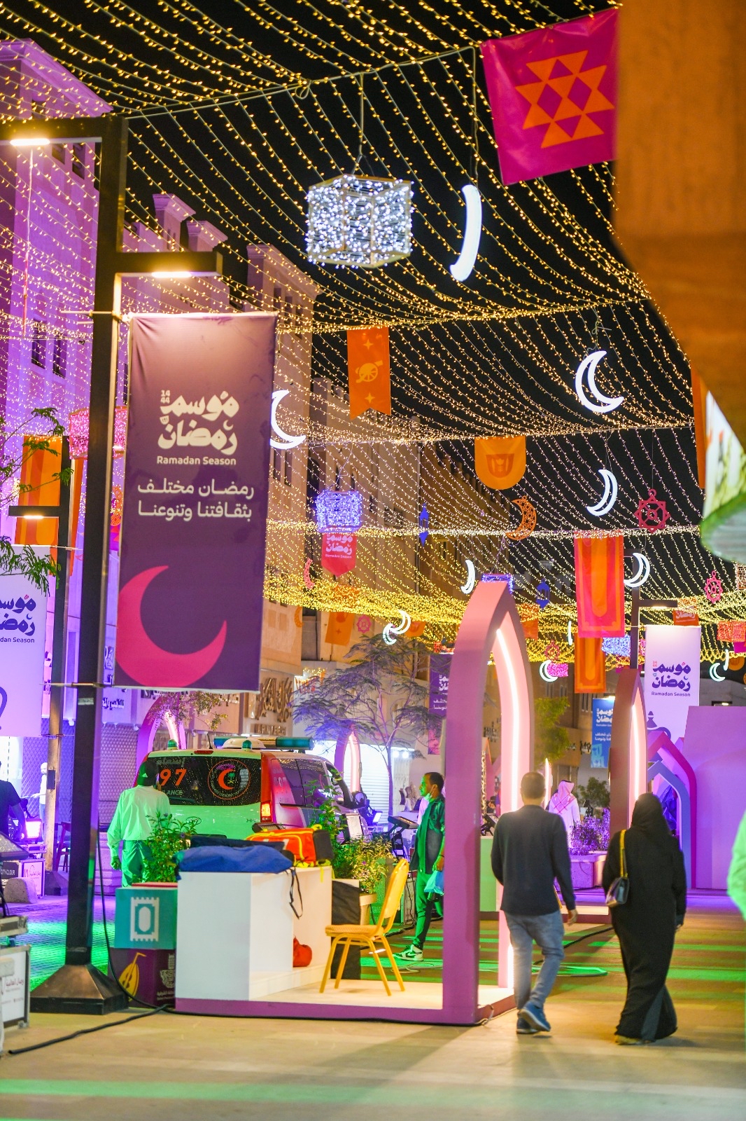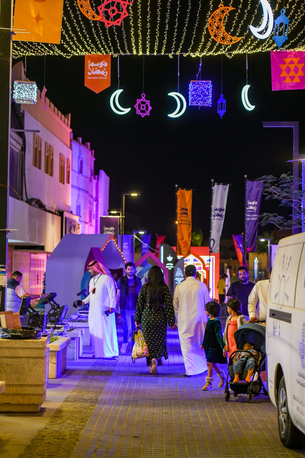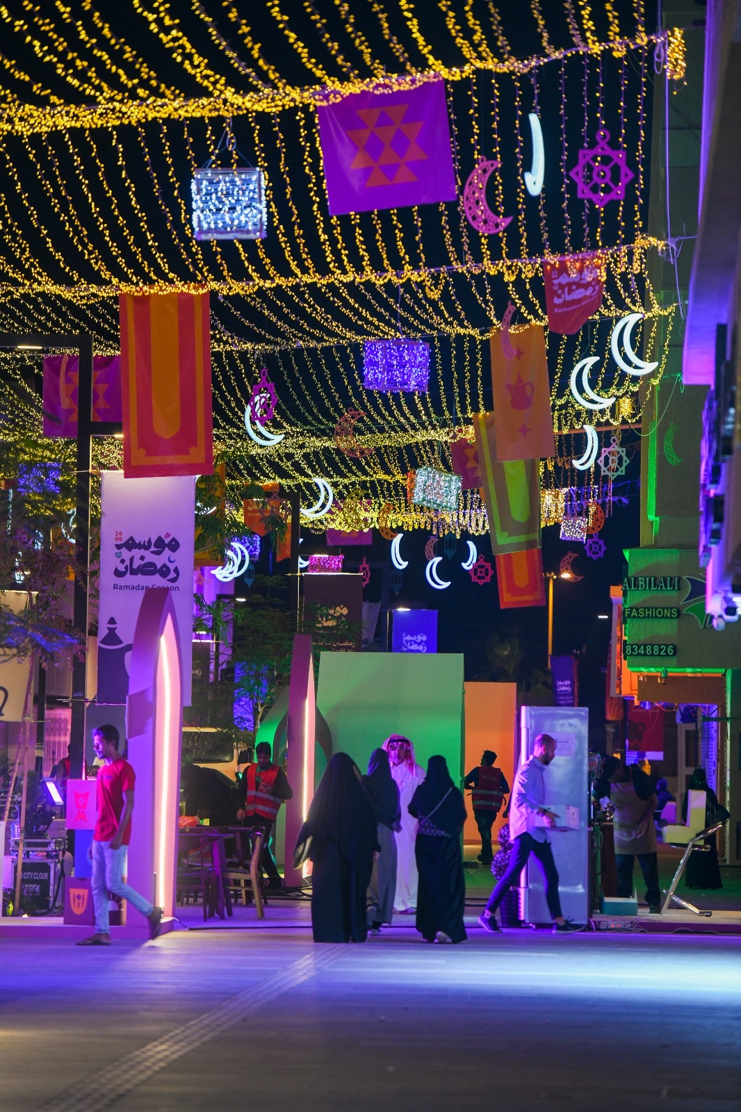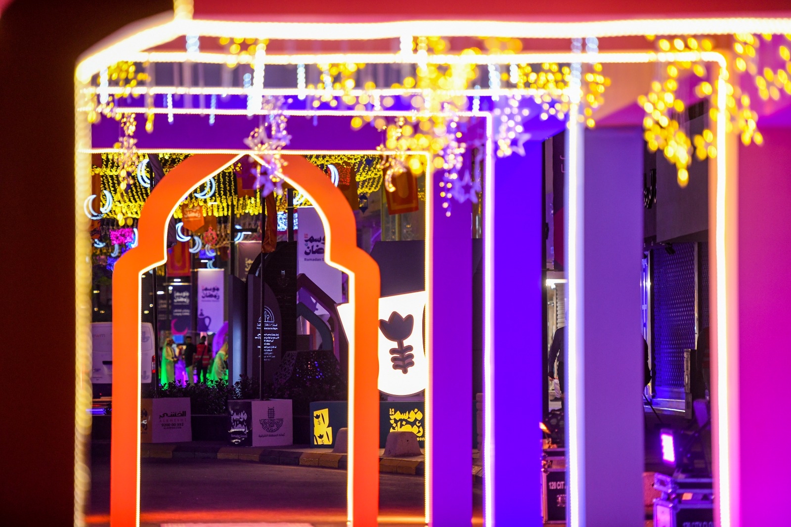 ويضم المهرجان، ما يقارب 22 منصة عرض للأسر المنتجة، حيث تم توفير جميع التجهيزات اللازمة لهم بما يتناسب وهوية الشهر الفضيل.