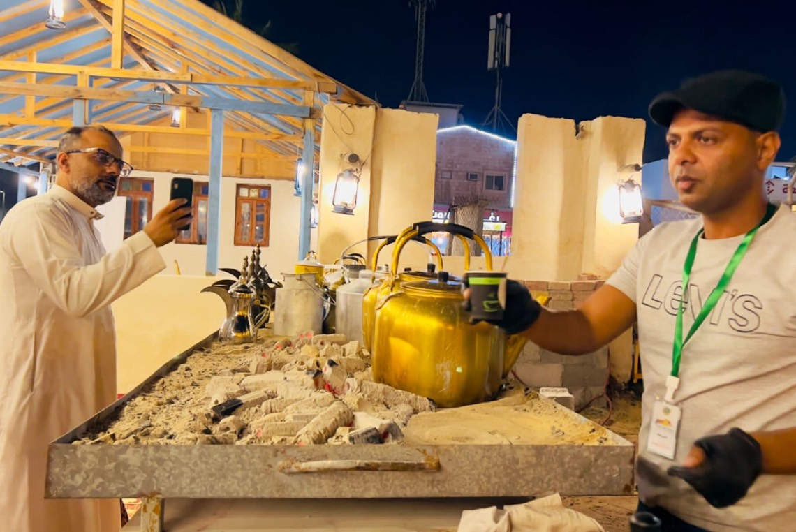 وأوضح لصحيفة ”جهات الإخبارية“ أنه يعمل في الضيافة منذ 20 عامًا، ويشارك في أكثر مهرجانات المنطقة، ويستمتع بالعمل كثيرًا، خاصةً أنه يربطه بالكثير من الناس.