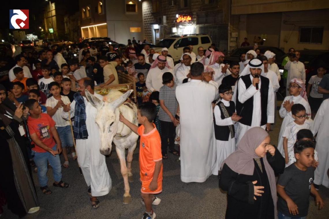 بالصور.. ”المسحر الفضل“ يشارك الأطفال في وداع شهر رمضان بصفوى