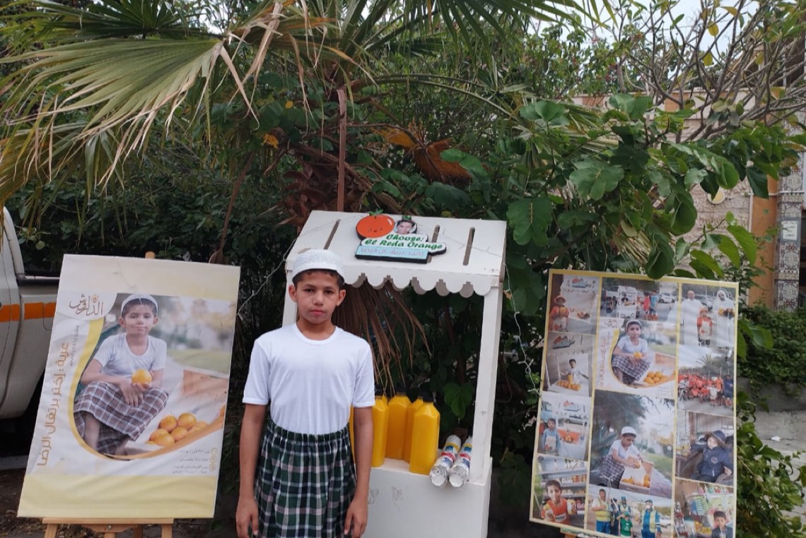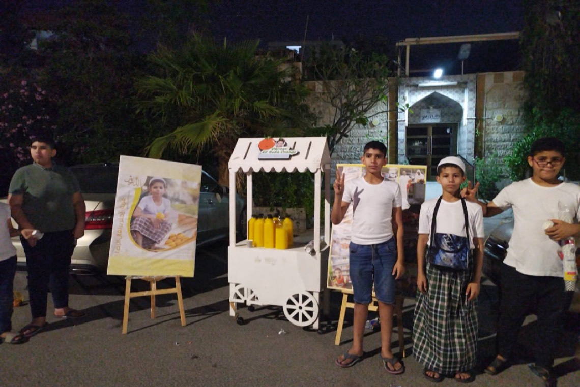وبعربته البرتقالية، قام الرضا بتوزيع عصير البرتقال الطبيعي مجاناً على الحضور، من باب الضيافة والترحيب بالضيوف.