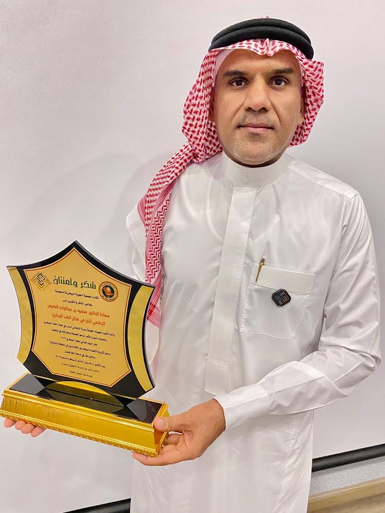 شهدت احتفالية «اليوم العالمي لطب البيطري 2023»، الذي نظمته الجمعية الطبية البيطرية السعودية، تكريم الطبيب البيطري الدكتور محمود الخميس، ومنحه وسام الإعلامي المهني البارز في مجال الطب البيطري.