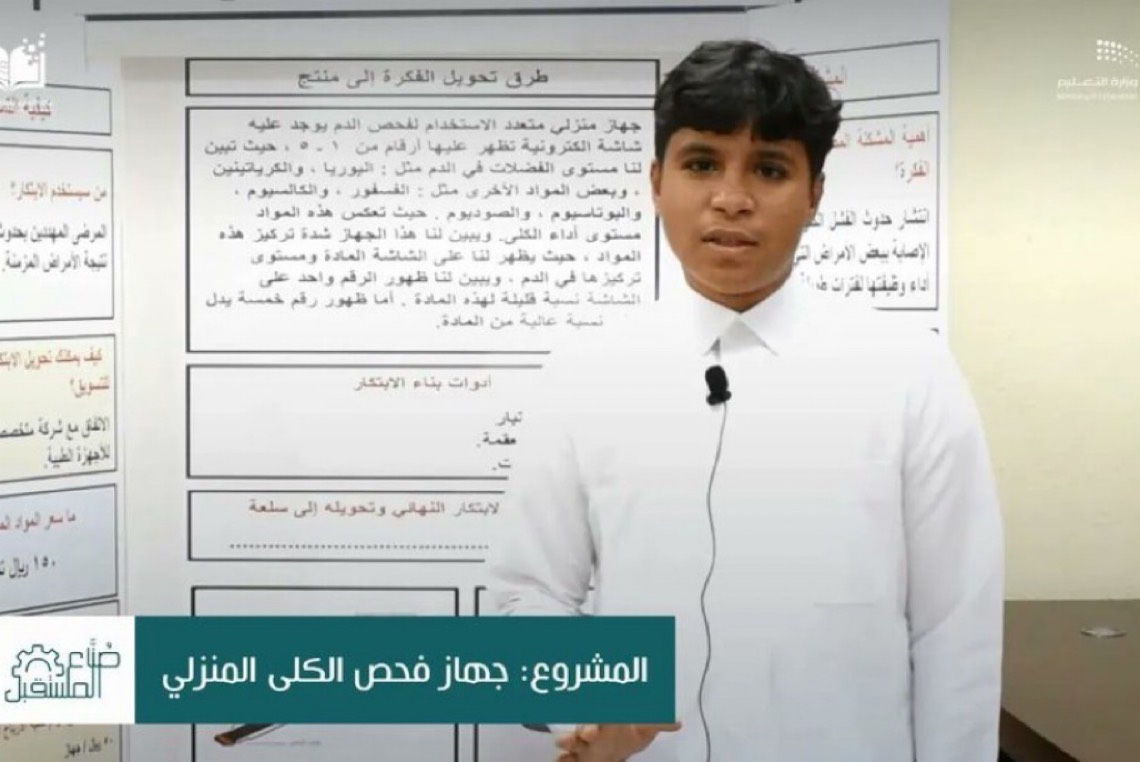 وقال: إن مشروعه عبارة عن ابتكار جهاز فحص الكلى المنزلي، وإن الفكرة جاءته حينما تعرض أحد أفراد العائلة لمرض الكلى بطريقة مفاجأة.