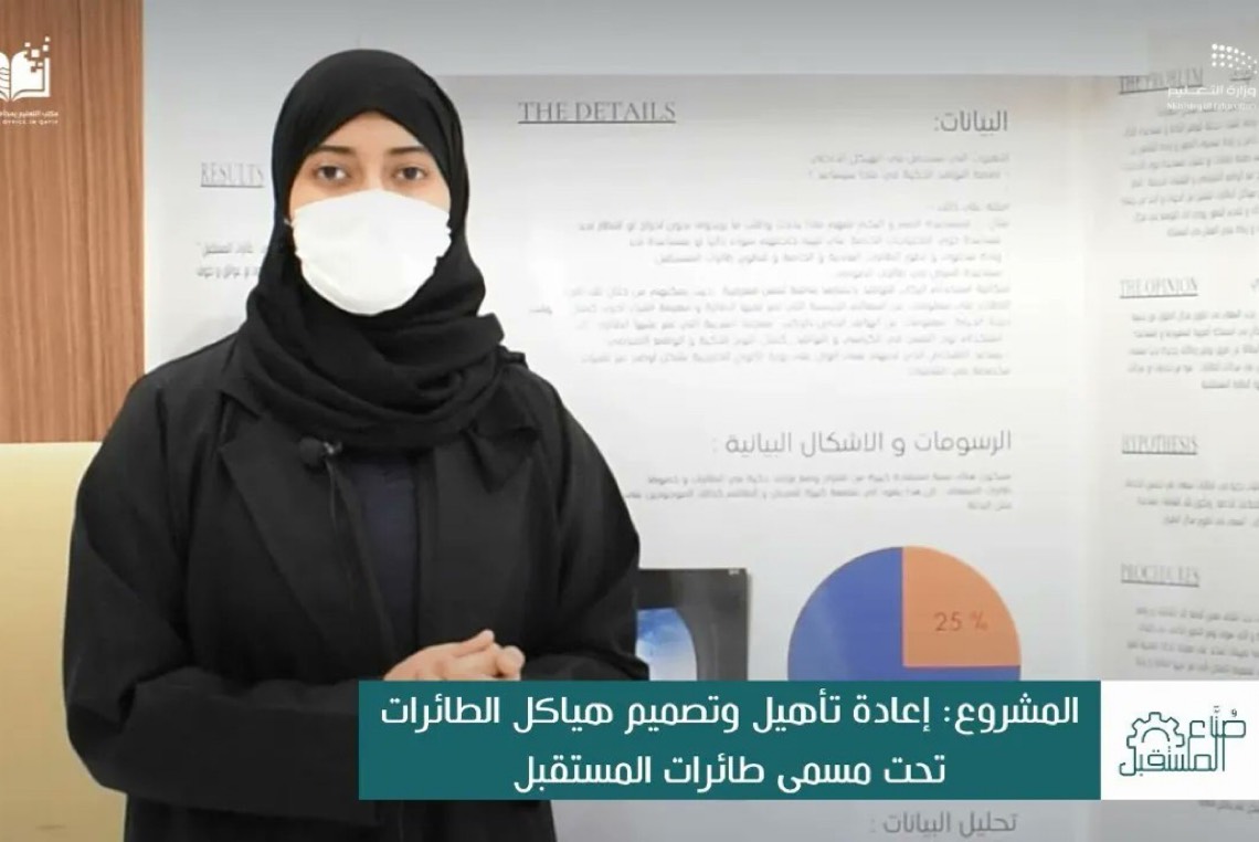 استعرضت الطالبة ”مريم آل مهدي“، من المدرسة الثانوية الأولى بحلة محيش بالقطيف، مشروعها في مجال هندسة الطيران والفضاء تحت عنوان ”إعادة تأهيل وتصميم هياكل الطائرات“، تحت مسمى ”طائرات المستقبل“.