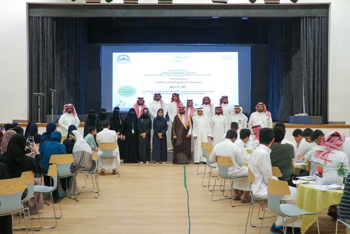 واطلع على مخرجات المعسكر التطوعي الأول وعلى نماذج من المبادرات التطوعية بمشاركة جهات خيرية متنوعة منها: جمعية تفاؤل لمكافحة السرطان، جمعية الأشخاص ذو الإعاقة، جمعية نقاء لمكافحة التدخين، جمعية الرياحين لرعاية الايتام، جمعية فتاة الاحساء، ومنصة بيئي.