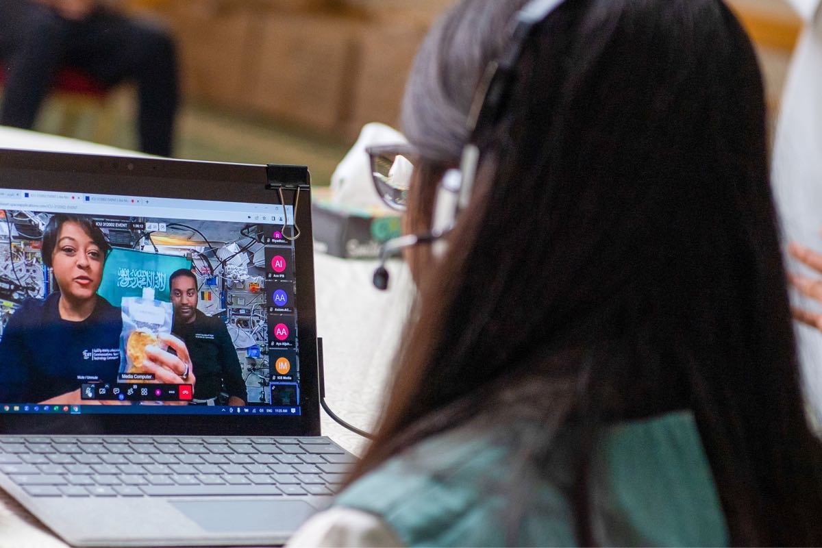بدأ رائدا الفضاء السعوديان، علي القرني وريانة برناوي، إجراء تجاربهما العلمية في الفضاء، وذلك بالتواصل المباشر مع طلاب بمدارس في المملكة.