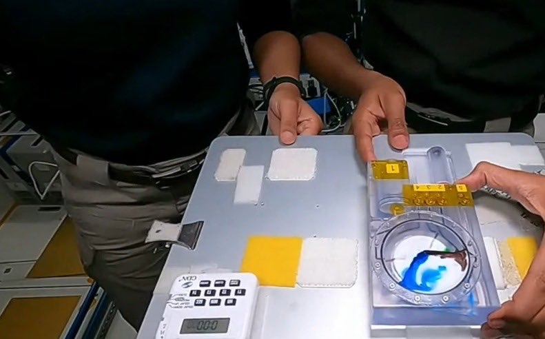 وركزت التجربة على ميكانيكا السوائل، وذلك عن طريق تحريك السوائل الملونة ومقارنة سرعتها وأشكالها في الفضاء وعلى الأرض، ومناقشة أسباب اختلاف الأشكال ومدى تأثير انخفاض وقوة الجاذبية على السرعة والأشكال.