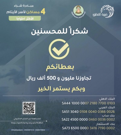 التبرعات تخطت 1,5 مليون ريال.. «خيرية القطيف» تختتم مبادرة شراء 4 مساكن للأيتام