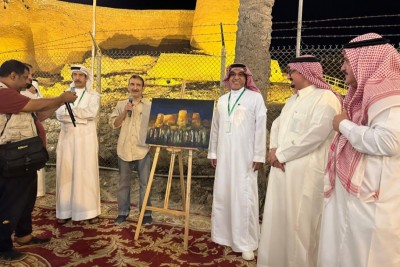 التشكيلية الدخيل تسكب الألوان على زوار بستان قصر تاروت