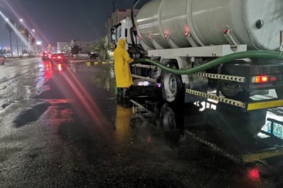 بالصور.. سحب تجمعات مياه الأمطار في القطيف