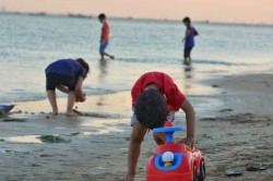 بالصور.. زخات المطر تجتذب الأهالي والأطفال لكورنيش القطيف