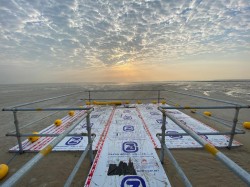 بالصور.. ممر آمن لسباحة ذوي الإعاقة في شاطئ الرملة البيضاء بتاروت
