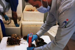 صادرت الحملة التفتيشية الثامنة للرقابة على منشآت بيع الأسماك، 1,3 أطنان من الأسماك المتنوعة، و293 كيلو جرام من الروبيان، و21 كيلو جرامًا من الخثاق، و17 كيلو جرامًا من القبقب، إضافةً إلى 101 من أدوات التقطيع والتجهيز. جاء ذلك بسبب عرض أو تخزين أسماك فاسدة أو ظهور علامات الفساد عليها أو مجمدة ومعاد تسييحها أو التلوث الخلطي. وتم سحب عدد 4 عينات أسماك مختلفة عشوائيًا لرصد الملوثات البكتيرية والمبيدات والمعادن الثقيلة للتأكد من ... |