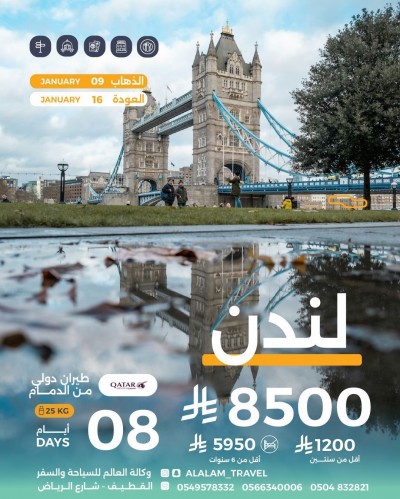 ‏🇬🇧 لندن 8 ايام يوم 8500 ريال