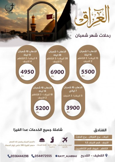 تعلن ”حملة راية العباس“ عن رحلاتها خلال شهر شعبان لزيارة الإمام الحسين (ع) والأئمة الأطهار.