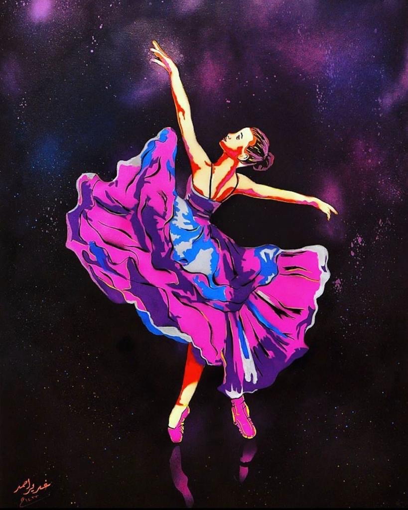 كما رسمت ”راقصة البالية، التانجو، وموسيقى الشوار، ولعبة الملوك، وعيون النمر“ وكلها تدل على الحياة والشبابية مما يهوى الشباب تعلمها، وكانت صعبة سابقاً وتيسرت الآن.