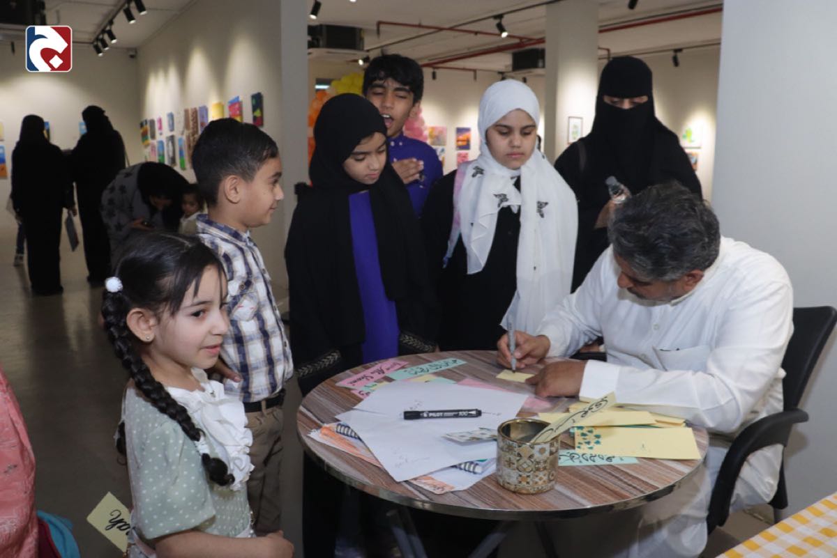 وقدمت الفعالية مشرفة المعرض الفنانة سعاد وخيك للأطفال الذين تراوحت أعمارهم ما بين الرابعة وحتى الرابعة عشر ربيعًا.