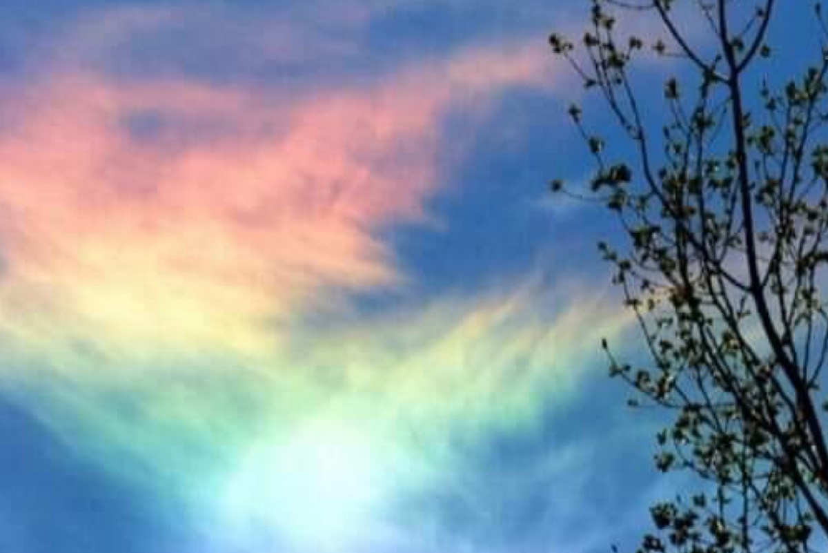 وأوضح أن هذه الهالة تلقب ب ”قوس قزح الناري“، بسبب ألوانها، وإن كانت في الحقيقة لا علاقة لها بالنار أو قوس قزح، فهي ناتجة عن انكسار ضوء الشمس عبر بلورات الجليد على شكل صفيحة في السحب الرقيقة العالية.