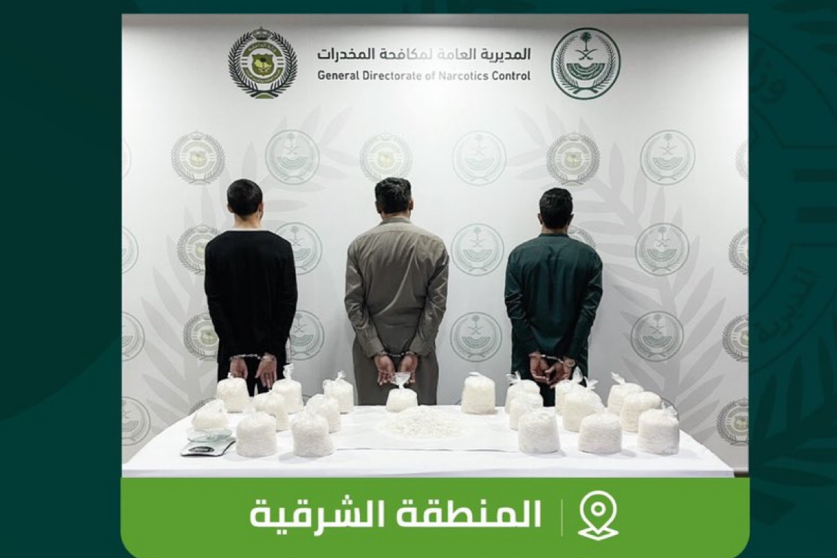 ألقت المديرية العامة لمكافحة المخدرات، القبض على 3 مقيمين من الجنسية الباكستانية بالمنطقة الشرقية، لترويجهم «19,9» كيلوجراماً من مادة الميثامفيتامين المخدر «الشبو».