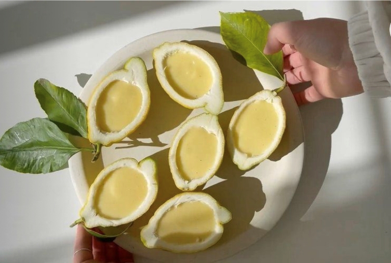 ويتميز هذا النوع الجديد من ”كاسترد الليمون“ باستخدام الليمون كوعاء لتقديم الحلوى، وهو فكرة جديدة ومبتكرة في عالم الحلويات.