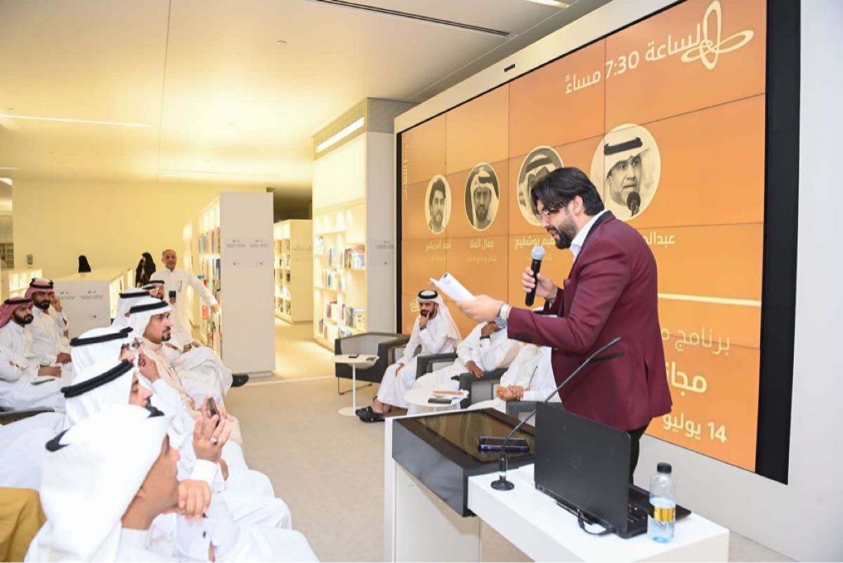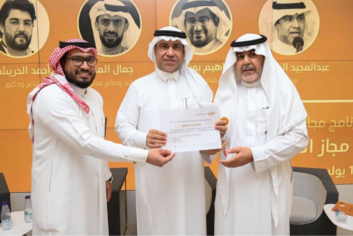 وتناوب على المنصة ثلاثة شعراء تألقوا في نصوصهم اختيارًا وإلقاءً، وهم: الدكتور أحمد الحريشي من المغرب، وجمال الملا من عمان، وإبراهيم بوشفيع من السعودية.