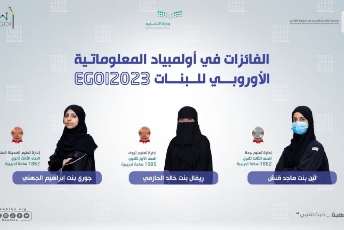 حققت المملكة، ممثلة في مؤسسة الملك عبدالعزيز ورجاله للموهبة والإبداع ”موهبة“، 3 ميداليات عالمية في منافسات ”أولمبياد المعلوماتية الأوروبي للبنات“، في نسخته الثالثة، والذي تستضيفه السويد خلال الفترة من 15 - 21 يوليو، بمشاركة 189 طالبةً يمثلون 52 دولة.