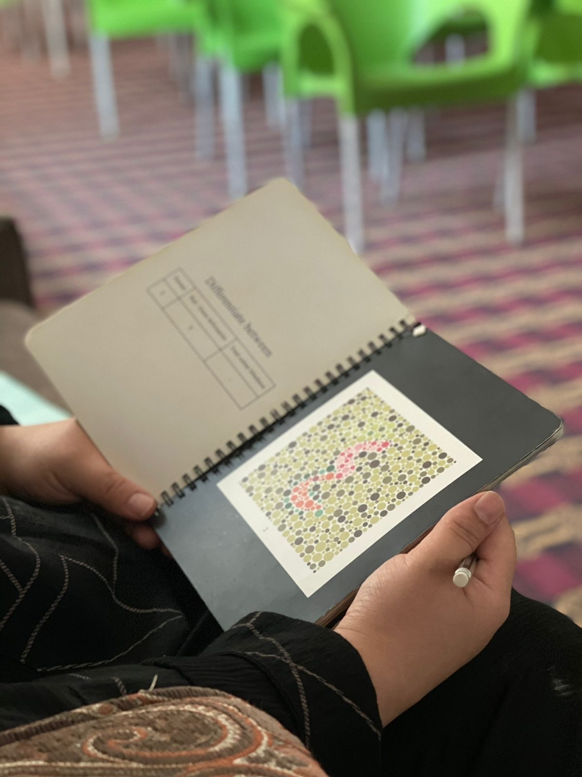 فحصت أخصائية البصريات فاطمة النمر، نظر 120 طفلًا، على مدى يومين، وذلك في بادرة تطوعية، في حسينية السيدة سكينة بالعوامية.