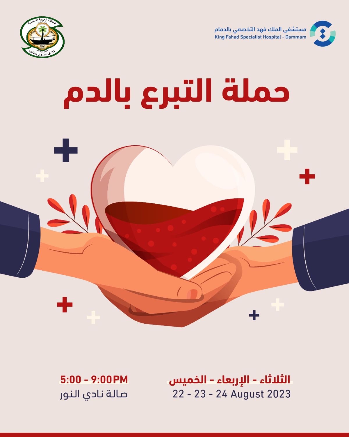 أعلنت إدارة نادي النور، اليوم الإثنين، إقامة حملة تبرع بالدم في صالة النادي بالتعاون مع مستشفى الملك فهد التخصصي.