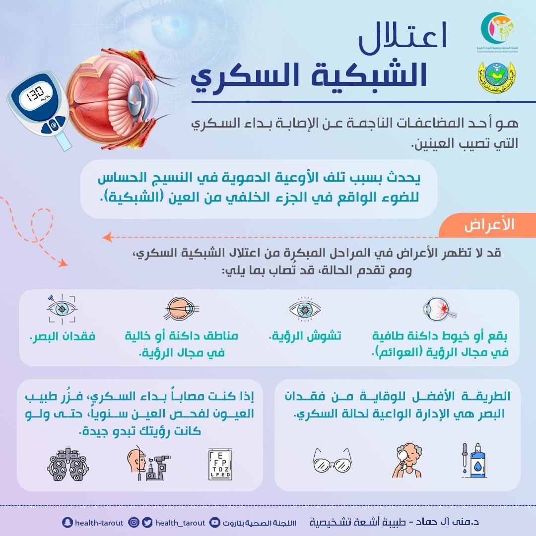 تأتي هذه المعلومات ضمن جهود اللجنة الصحية بتاروت لتوعية الجمهور وتثقيفهم حول الأمراض المزمنة ومضاعفاتها، بهدف تعزيز الوعي الصحي وتشجيع المواطنين على اتخاذ الإجراءات الوقائية اللازمة للحفاظ على صحة عيونهم والوقاية من مخاطر اعتلال الشبكية السكري.