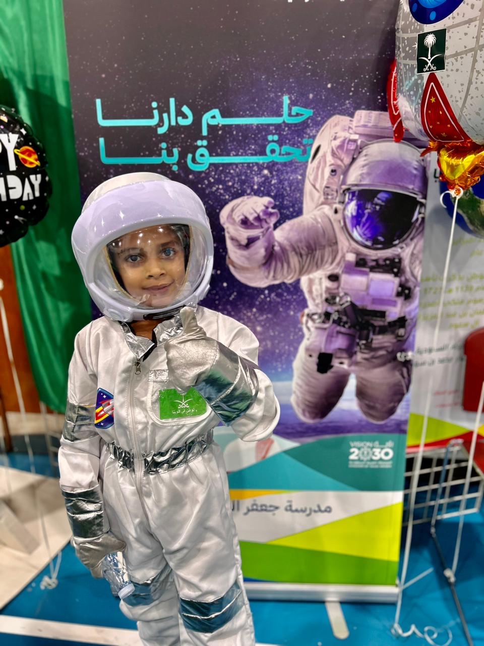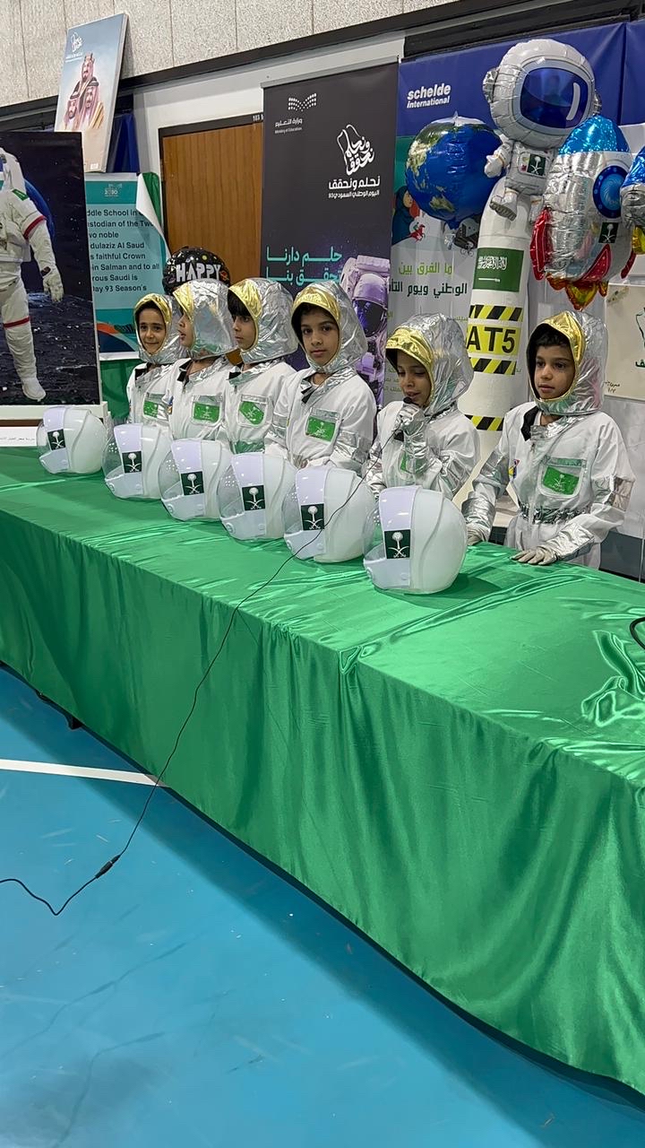 وجاءت المشاركة بتنظيم رائد النشاط عبدالله آل جبر وتحت اشراف مدير المدرسة عبدالله آل رضوان، مؤكدين على أهداف الركن المُحاكي لرواد الفضاء.