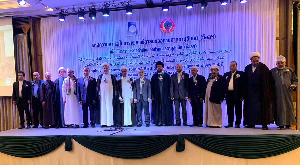 جاء ذلك في الكلمة التي القاها في المؤتمر الذي أقامته مؤسسة الإمام الخوئي الخيرية، بالتعاون مع مؤسسة البحوث والدراسات الإسلامية، في العاصمة التايلاندية بانكوك، بمناسبة المولد النبوي الشريف، تحت عنوان «سر إنجازات النبي الأكرم في نشر الرسالة»، بتاريخ 22 ربيع الأول 1445 هـ الموافق 7 أكتوبر 2023 م وشارك فيه عدد من الشخصيات الدينية والفكرية والاجتماعية من مختلف الدول والطوائف.