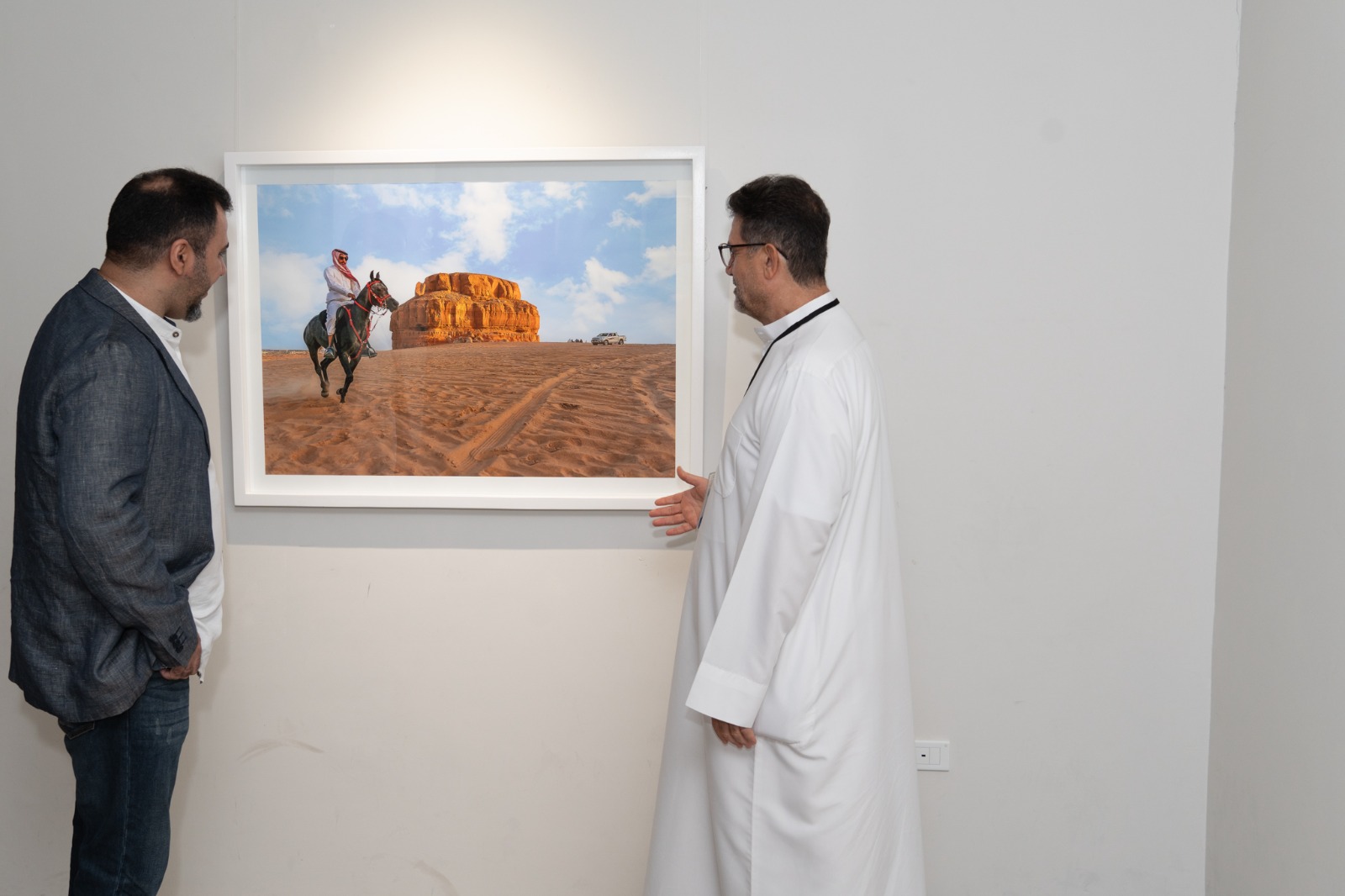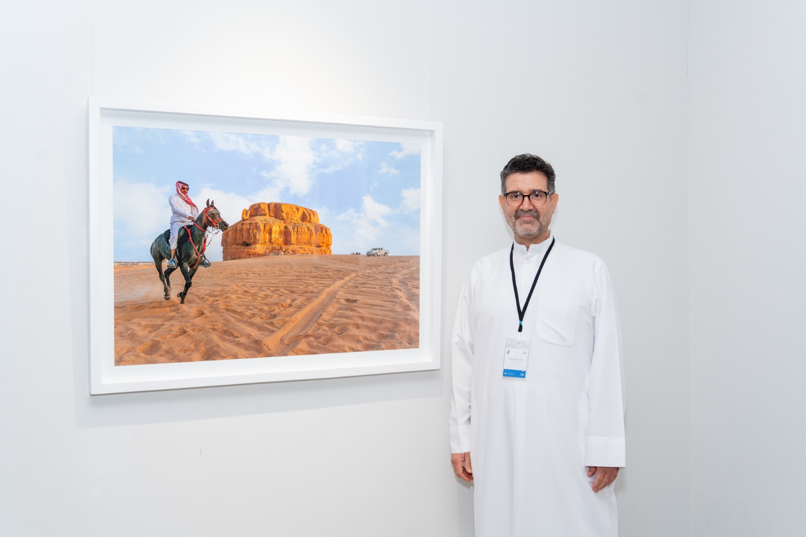 وتضمنت مشاركته في المعرض بلوحة عنونت ب ”أثر بعد عين“ والتي التقطها عند ”جبل الأربع“ بالأحساء والذي يعد أحد الشواهد على آثارها التاريخية.