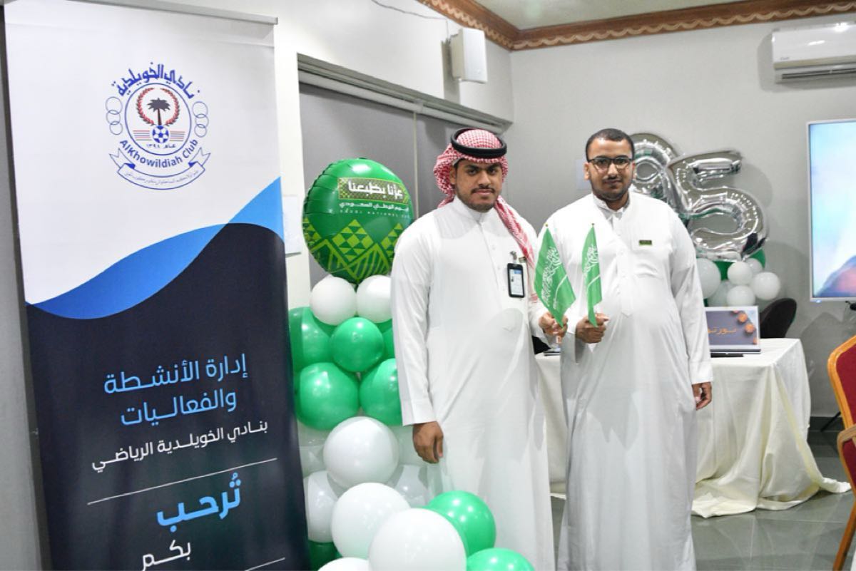 نظم نادي الخويلدية الرياضي احتفالًا بمناسبة اليوم الوطني السعودي الخامس والتسعين، حيث اجتمع منسوبو النادي في مقره للمشاركة في فعاليات متنوعة عكست مشاعر الفخر والاعتزاز بالوطن.