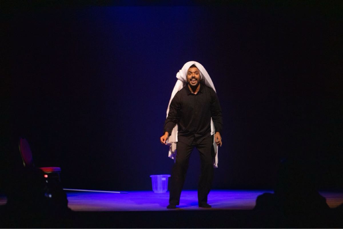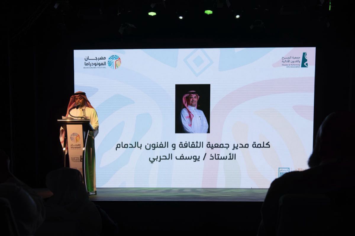 واستهل الحفل بعرض بصري أدائي لافت، جسد فيه الممثل شهاب الشهاب ست شخصيات متناقضة في آن واحد، معتبراً مشاركته تحدياً ومسؤولية فنية، في لوحة من إخراج نوح الجمعان، عكست جوهر المونودراما القائم على قدرة الممثل الواحد على حمل الرسالة كاملة وتجسيد حالات شعورية متباينة.