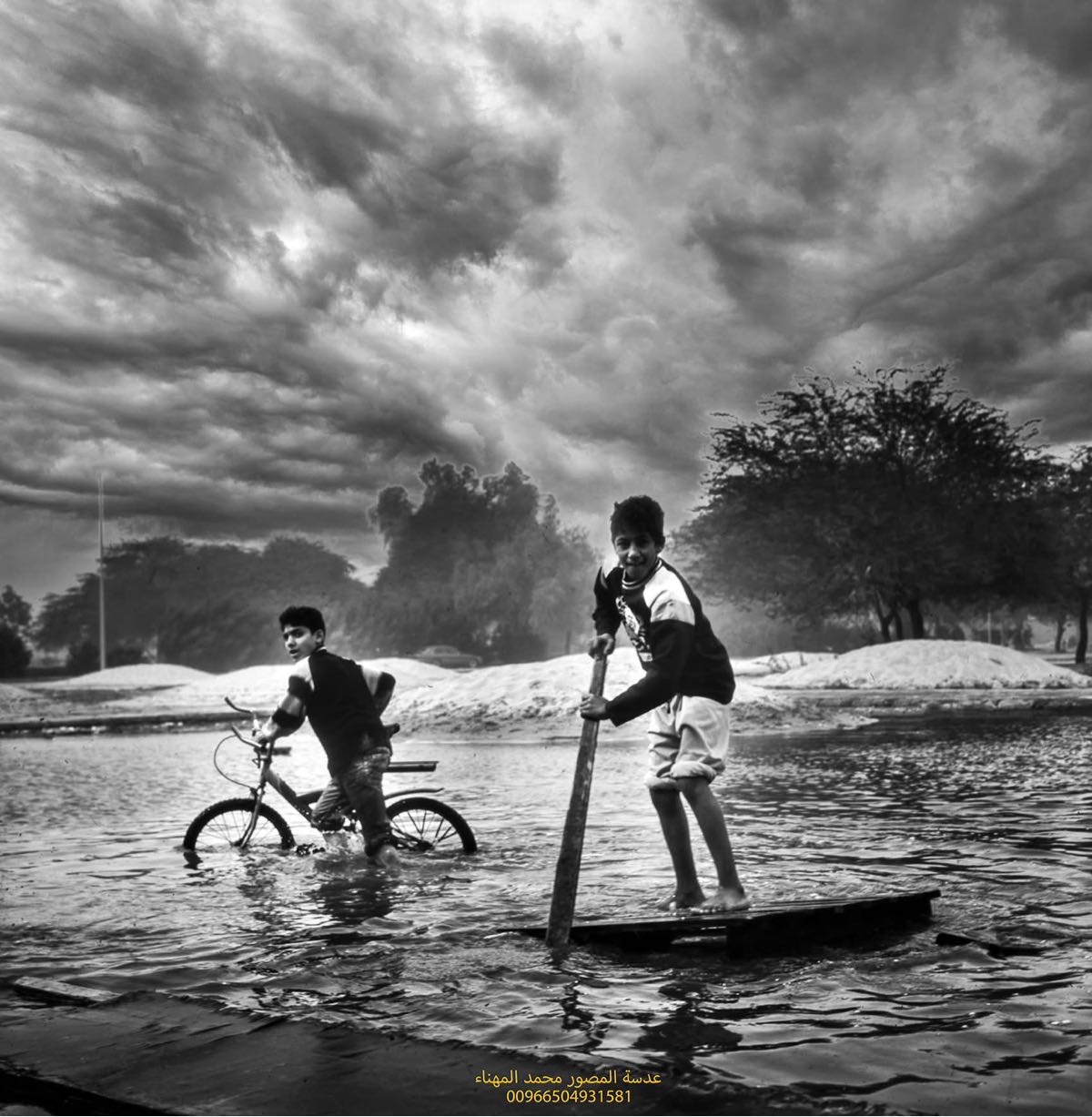 وثّق المصور الفوتوغرافي محمد المهنا عبر ريبورتاج مصور تاريخي يعود لربع قرن، مشاهد إنسانية عفوية جسّدت فرحة الأطفال بقدوم المطر في الأزقة القديمة.