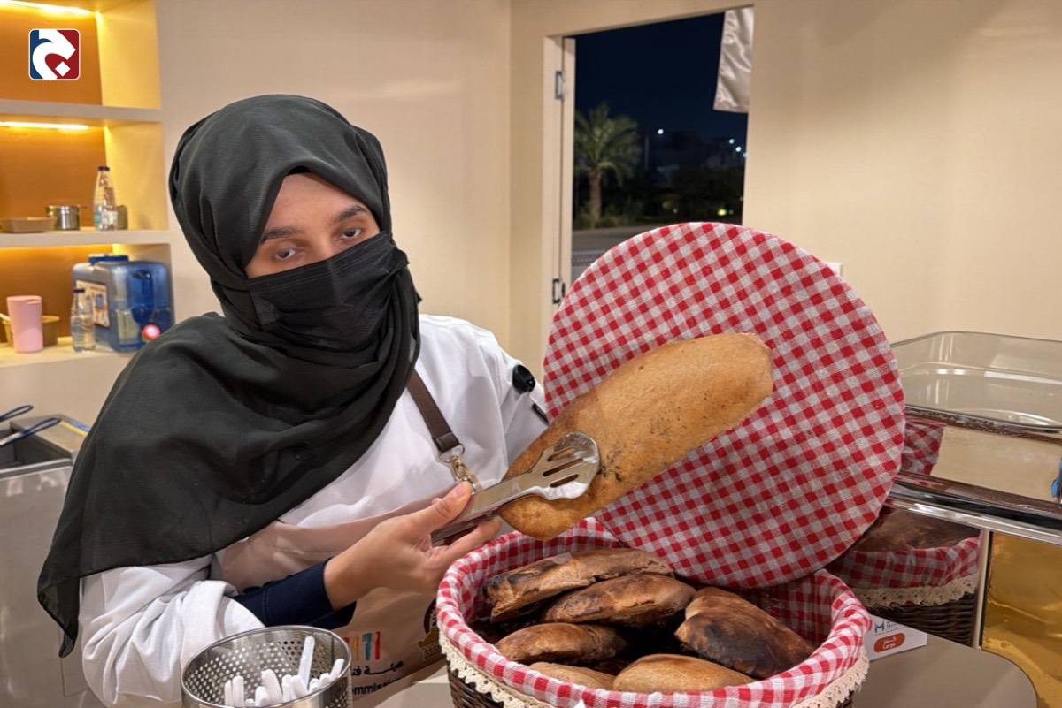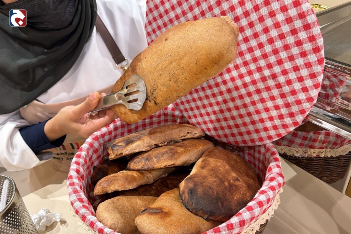 وعرفت الفرحان الزوار بخبز ”الميفا“ التقليدي، موضحة أن تسميته تعود إلى تنور ”الميفا“ الشهير الذي يُخبز بداخله، مما يمنحه نكهة دخانية مميزة وقواماً مختلفاً عن بقية أنواع الخبز في المملكة، ليقدم كرفيق أساسي للأطباق الجنوبية الدسمة.